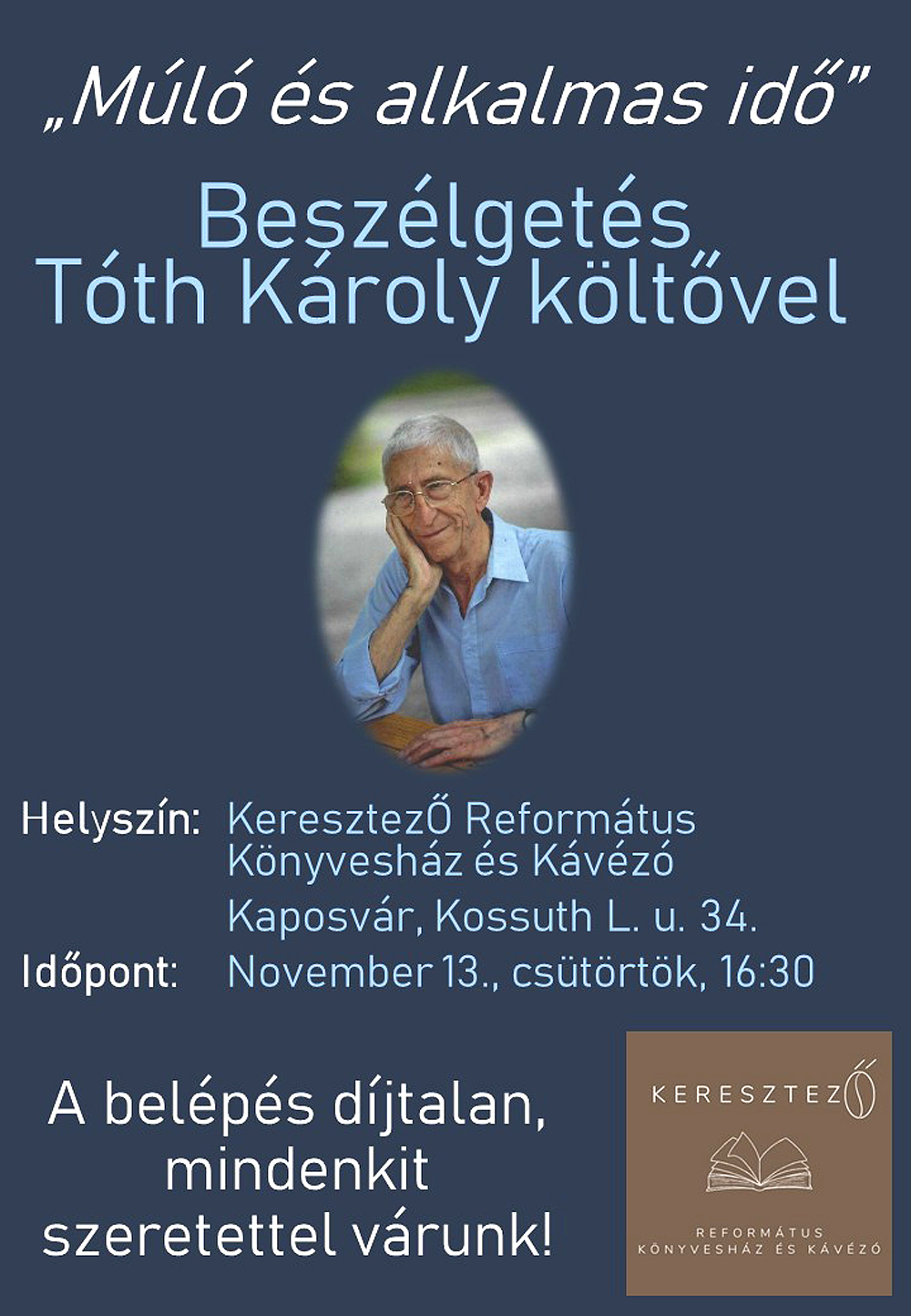 Főoldal / Hírek / Programok / Múló és alkalmas idő – Beszélgetés Tóth Károly költővel