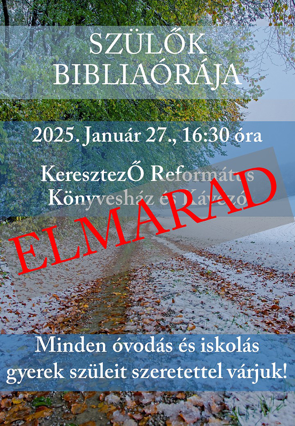 Szülők bibliaórája – 2026. január 27. – ELMARAD!